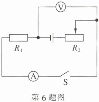 6. (多选)如图所示的电路中,电源电压不变,$ R_1 $ 为定值电阻,开关 $ S $ 闭合后,滑动变阻器的滑片向右移动时,下列分析正确的是(