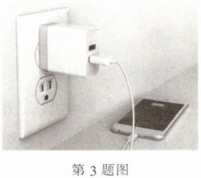 3. 如图所示,手机充电器在插座上未给手机充电时,内部也有电流通过。若我国每天有$4×10^{8}$个充电器在插座上,每个充电器每天未给手机充电的平均时间为20h,平均实际功率为0.1W,则全国一天因此浪费的电能约为(