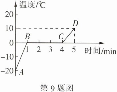 9. 如图所示为某物质熔化时温度随加热时间变化的图像(加热装置的功率不变,不考虑热损失),从图中能得到的正确信息是(