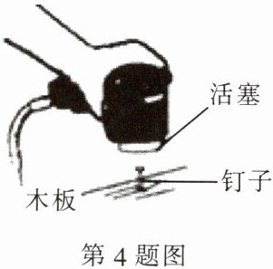 4. 如图所示是家居装修中的一种空气锤,它是利用压缩空气使活塞迅速推出,产生巨大压力,能将铁钉打入木板,甚至能将混凝土压碎。下列关于空气锤的使用,说法正确的是 (