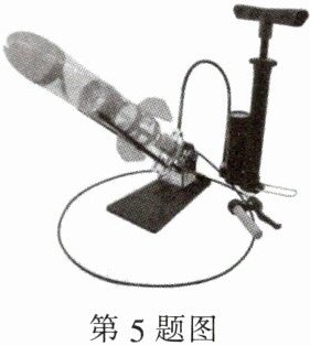 5. (多选) 如图是某实验小组用塑料瓶制作的水火箭:先在瓶里装适量水,再将带有阀门的金属管插入瓶塞,旋紧瓶塞后用打气筒往瓶里打足气,打开阀门后,水从尾部的金属管向下喷出,水火箭向上飞向空中,关于这一过程,下列说法正确的是 (