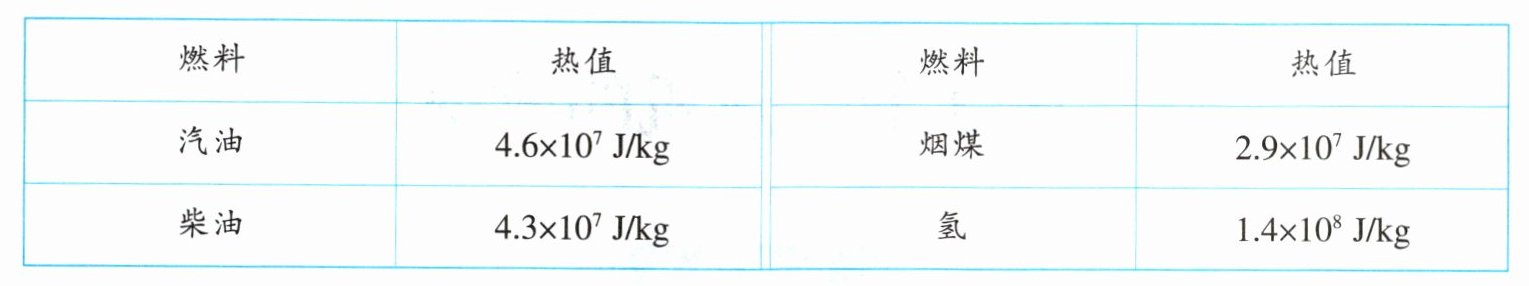 (1)根据热值表可知,汽油的热值是$ 4.6 × 10^7 J/kg $,它表示的物理意义是