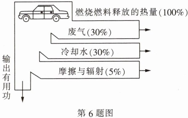6. 内燃机的发明,使人类的许多梦想得以实现,飞机、潜艇、坦克等,都是在内燃机发明之后才研制成功的。如图是某内燃机的能量流向图,关于内燃机,下列说法正确的是(