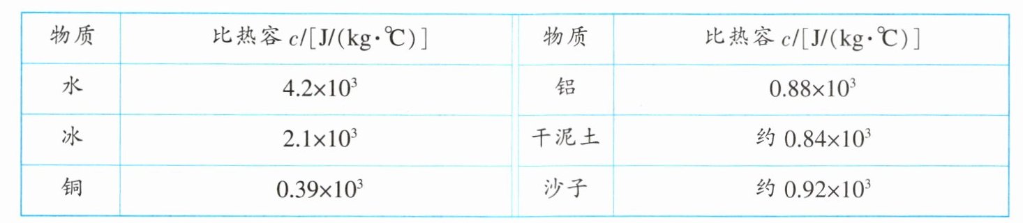 (选填“铝块”或“铜块”) 吸收的热量较多。(4) 沙漠地区昼夜温差很大,而沿海地区昼夜温差比较小,因为沙子的比热容