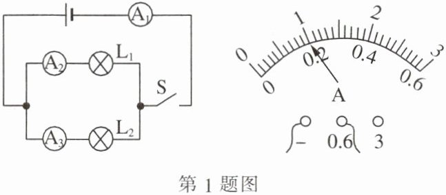 的电流;在三只电流表中,其中示数最大的是A₁