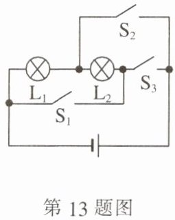 13. 如图所示的电路中,如果闭合开关S₁、S₂,断开S₃,灯L₁、L₂之间是