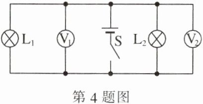 4. 如图所示的电路,电压表$V_1的示数为4.5V$,则电压表$V_2$的示数