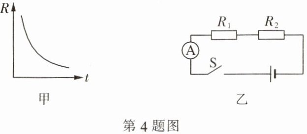 4. 某同学在科技活动中,了解到有一种用半导体材料制成的热敏电阻,其电阻随温度变化的图像如图甲所示。