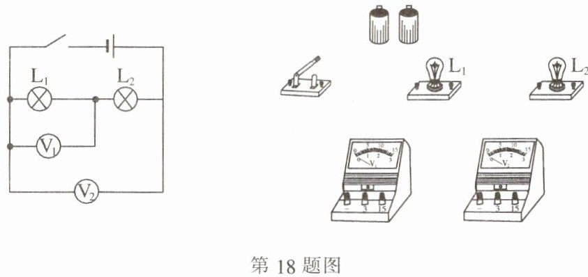 18. 按如图所示的电路图,将实物图用笔画线代替导线连接起来,要求导线不要交叉。
