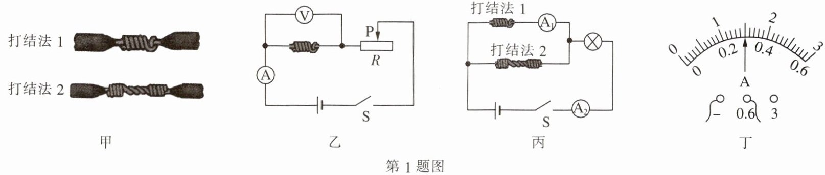 1. 家里装修时,学生甲发现电工师傅总是在导线与导线连接的位置打一个漂亮的结(如图甲所示)。于是想比较这两种打结法的电阻大小。