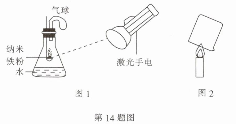 14. (9分)某化学兴趣小组同学设计图1所示实验验证质量守恒定律。纳米铁粉(颗粒大小达到纳米级的铁粉)在空气中不自燃,稍加热即剧烈燃烧。