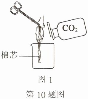 将蘸有酒精的棉芯点燃后放入烧杯中,向烧杯中缓缓倾倒二氧化碳,观察到烧杯中的棉芯自下而上熄灭(如图1所示)。说明二氧化碳具有的性质有