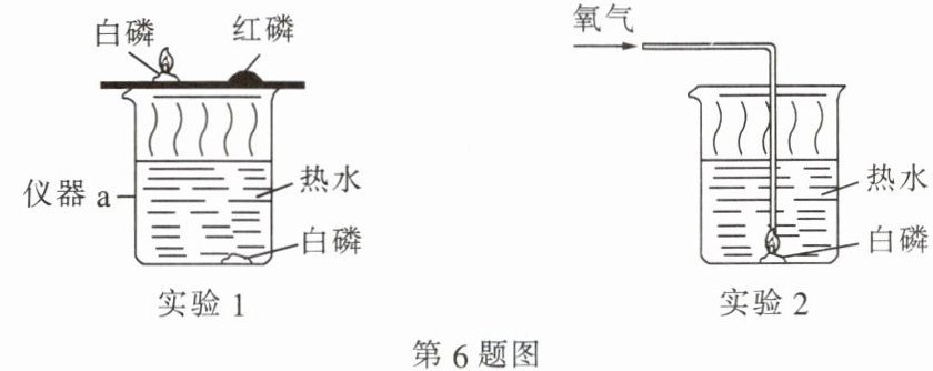 6. 如图所示实验可以探究燃烧的条件。已知:白磷和红磷的着火点分别为 $ 40^{\circ}C $、$ 240^{\circ}C $。请回答下列问题。