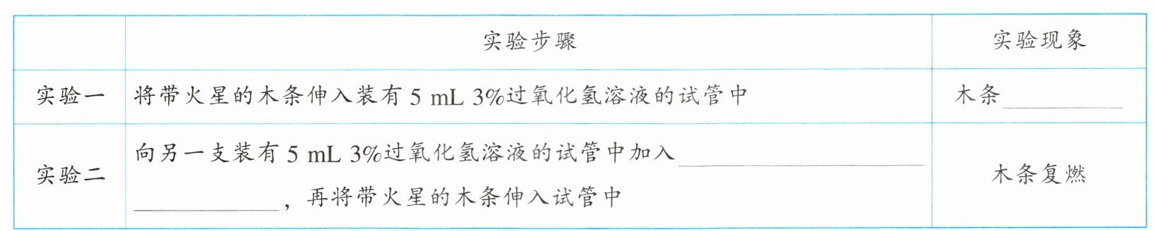 。【实验验证】取1 g纯净的氧化铜粉末,两支装有5 mL 3%过氧化氢溶液的试管,进行以下实验: