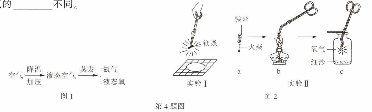 (1)沸点 (2)化合 (3)①火柴即将燃尽 ②火星四射