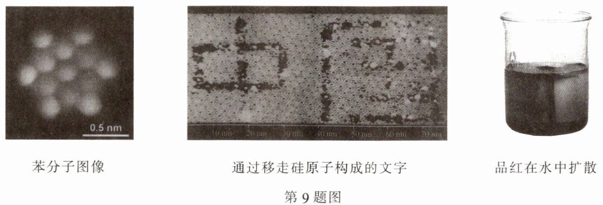 )A.用扫描隧道显微镜获得苯分子的图像——分子很小