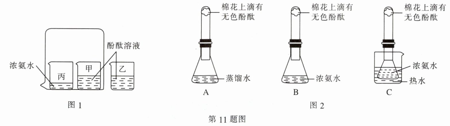 (1)液体变红 分子在不断运动 对比说明空气中的物质不能使酚酞变红 (2)①C A ②温度越高,分子运动越快
