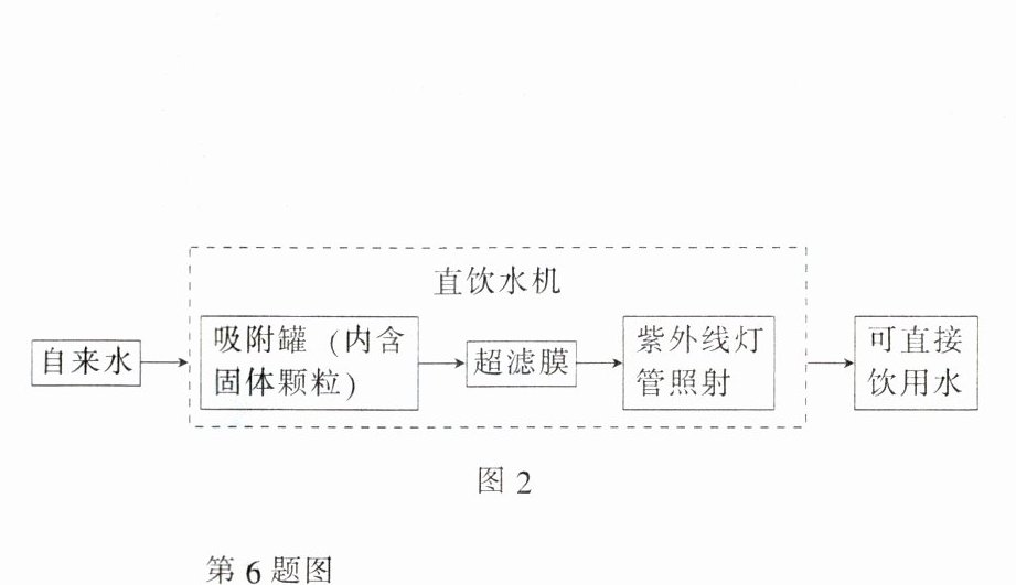 (3) 机场、车站等公共场所设有许多直饮水机,能将自来水进一步净化处理得到可直接饮用的水,其处理水的过程如图 2 所示。