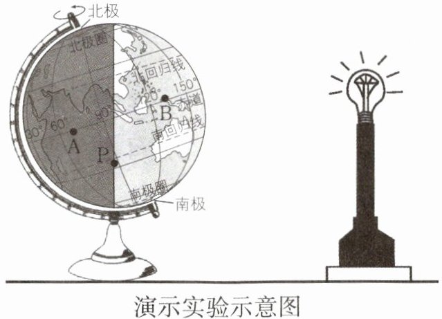老师在教授地球运动时,用灯泡模拟“太阳”,并拨动地球仪,演示地球自转。读图完成1~3题。