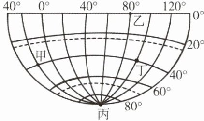 14. 甲、乙、丙、丁四地中有极昼极夜现象的是(