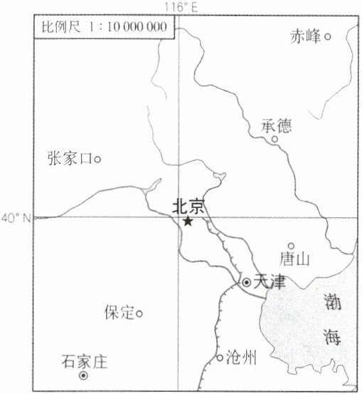 右图为京津冀局部地区示意图。读图完成6、7题。