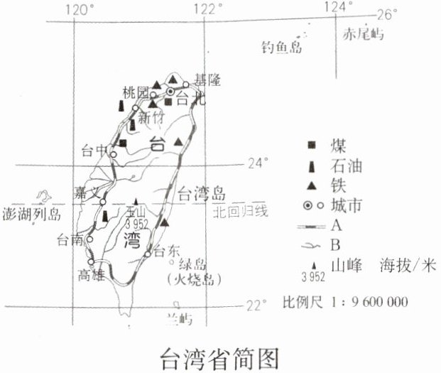 (2)在有经纬网的地图上,要根据经纬网确定方向,则台中位于台北的