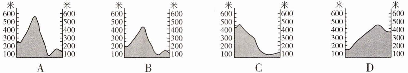 地。小组还绘制了四幅地形剖面图,小张判断出图A