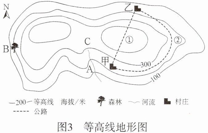 。(3)图3是标注了地图语言的等高线地形图,其中缺少______