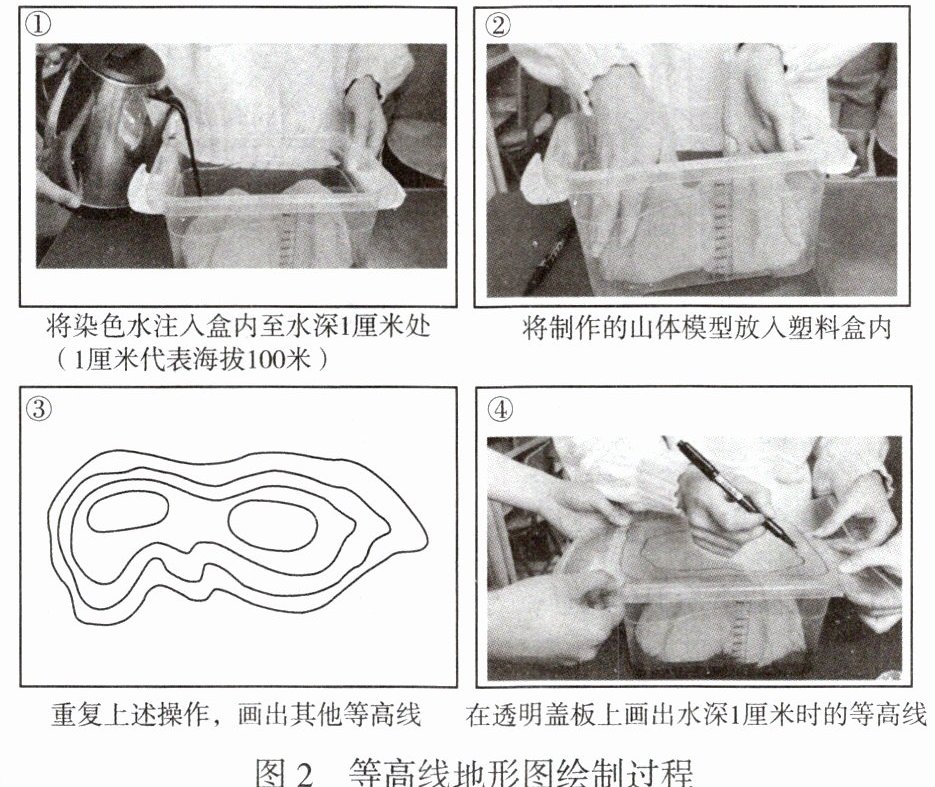 (1)图2是某同学绘制等高线地形图过程的照片,正确排序是______