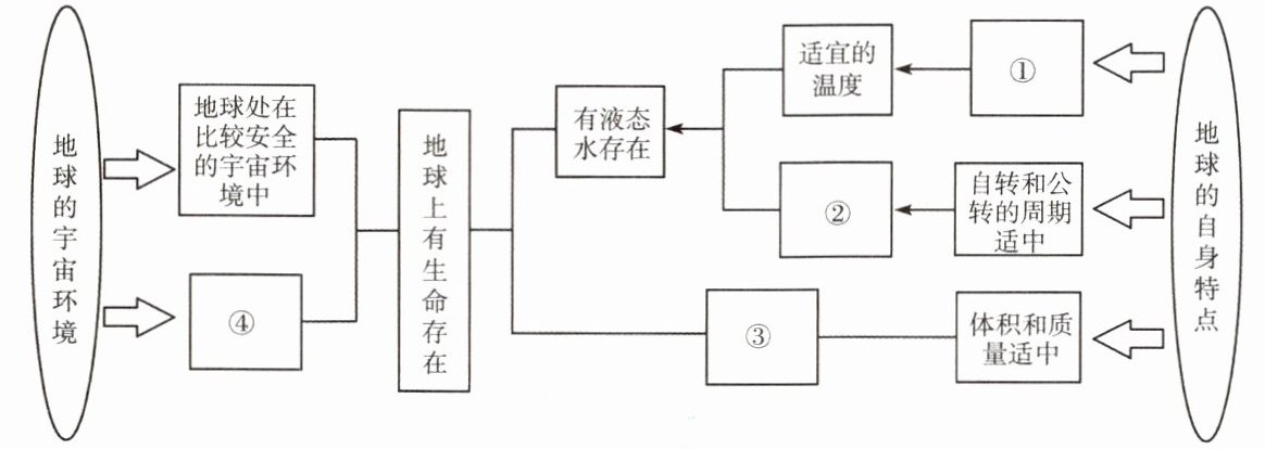 (3)与其他行星相比,地球的特殊性表现在它是一颗存在生命的行星。请按照相互关系,将下列字母填在对应的横线上。