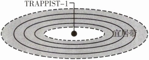 人类在距离地球40光年的一颗恒星(TRAPPIST - 1)周围发现了7颗与地球大小相当的类地行星,其中3颗位于宜居带内。右图为“TRAPPIST - 1系统”示意图。据此完成14、15题。