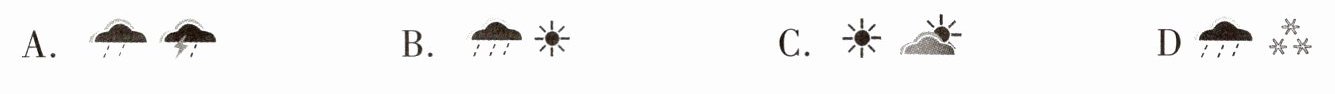 7. 有时,一个城市名称旁边会出现两个天气符号,表示天气将从某种天气状况转变为另一种天气状况。例如,表示