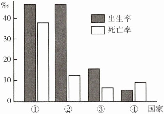 2024年中期,全球人口达到82亿。一个国家人口增长状况取决于人口出生率和人口死亡率之差。下图为四国人口增长示意图。读图完成第4、5题。