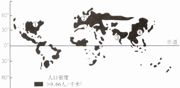 14. 图中①~④地区成为人口密集区的共同原因是(