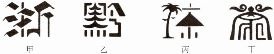 下图是一位设计师为浙江省、贵州省、海南省和内蒙古自治区四省区简称设计的艺术字,这些字中蕴含着各自地方特色的文化元素。读图完成12、13题。