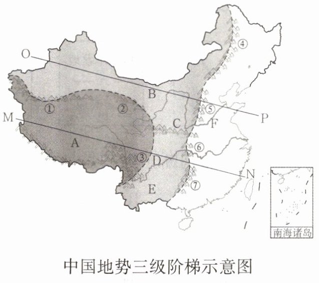 。(3)如果分别沿图中直线OP、MN作剖面图,能反映我国地势特点的是