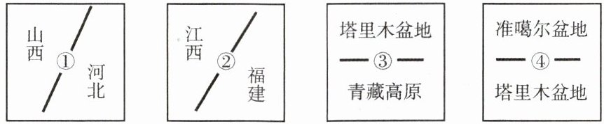 14. ①山脉也是地形区的界线,其东、西两侧的地形区分别是(