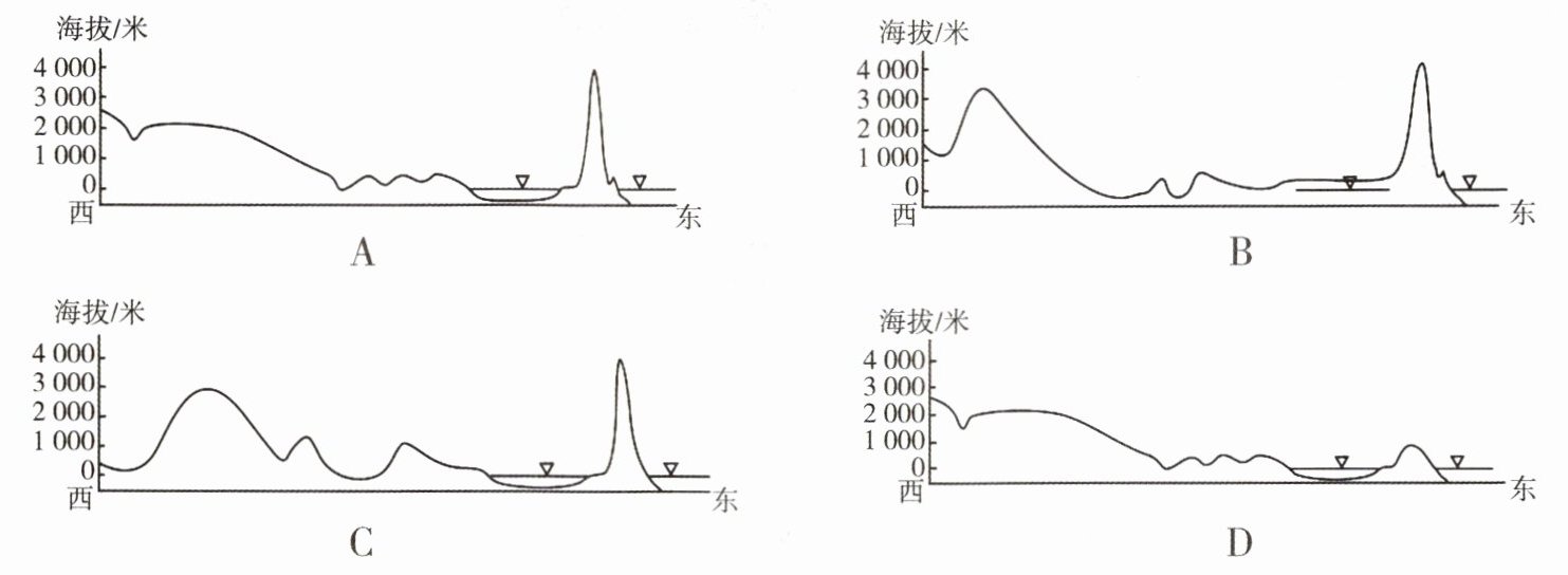 17. 同学们手绘了我国沿北回归线地形剖面示意图,其中最接近实际的一幅是( )