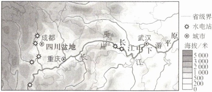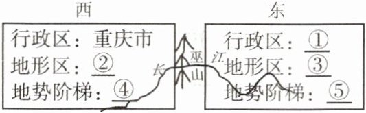 (1)将巫山两侧地理事物名称填在①~⑤处。