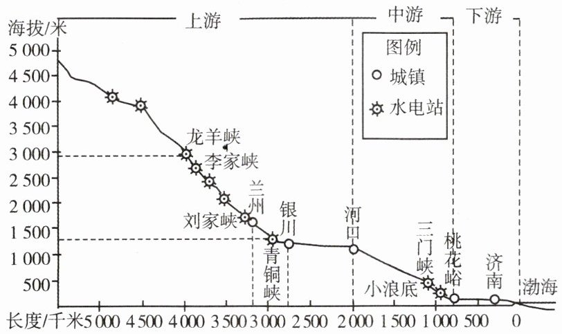 (6)下图为黄河干流纵剖面图。黄河干流水电站集中分布在