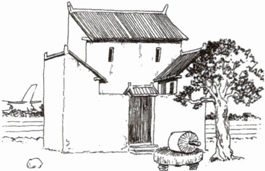 半边房是陕西关中地区的特色民居之一。当地有“乡间房子半边盖,省工省钱省木材,挡风避雨又御寒,肥水不流外人田”的说法。右图为“半边房”民居示意图。读图完成16、17题。