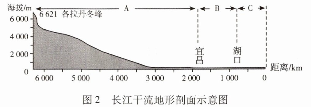 。(3)结合图2,长江的水能资源主要集中在