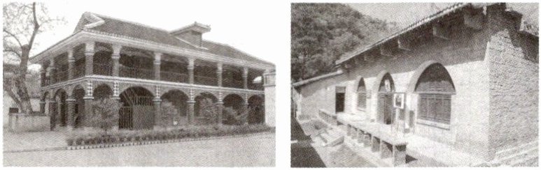 革命圣地延安孕育的“延安精神”是中国革命和建设的伟大精神动力。读遵义会议会址(下左图)和延安毛泽东旧居(下右图)景观图,完成15~17题。