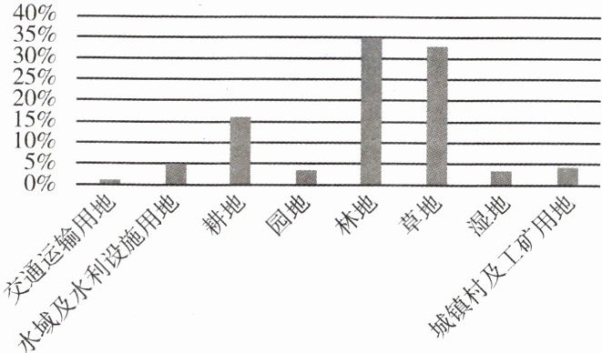 下图为中国可利用土地资源类型统计图,读图完成1、2题。