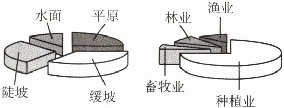 下图为中国南方某地区地形结构和农业用地结构的饼状图,读图完成3、4题。