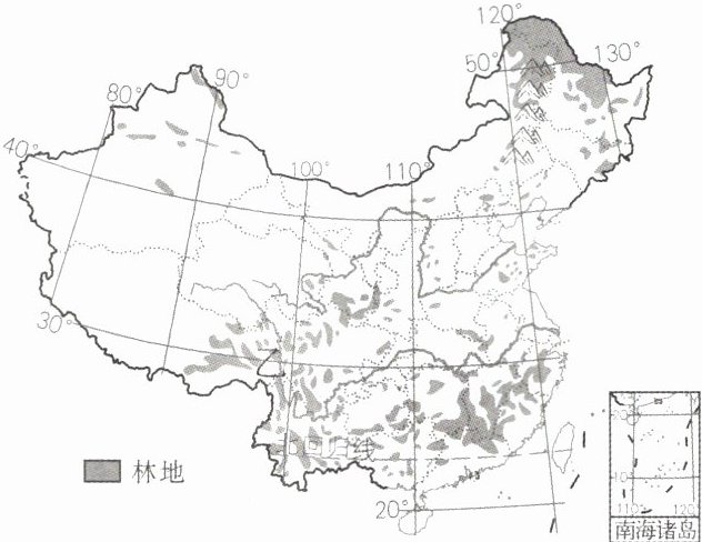 D. 东部季风区由于人口密集,农业生产发达,所以林地绝大部分分布在山区