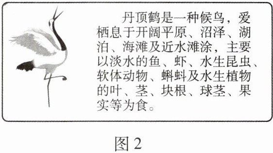 位于黄河入海口处的黄河三角洲自然保护区是以保护河口湿地生态系统和珍稀、濒危鸟类为主的湿地类型自然保护区,它的生态环境在很大程度上反映了整个黄河流域的生态健康状况。图1为黄河示意图,图2为丹顶鹤资料卡。