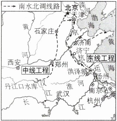 下图为南水北调工程部分线路示意图,读图完成6~8题。