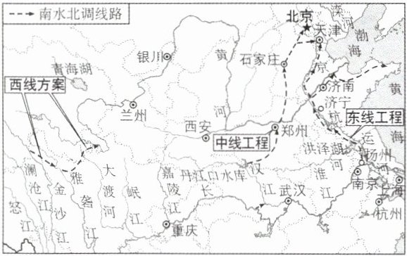 (1)南水北调工程的东线和中线是将长江流域的水调往