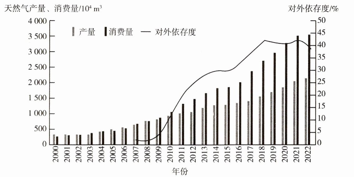 。(3)为降低天然气的对外依存度,我国可采取的有效措施有